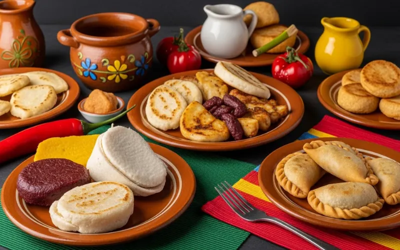 | Arepa | Flat corn cake, grilled/baked/fried. 42+ varieties. | Bread/side (nationwide) |