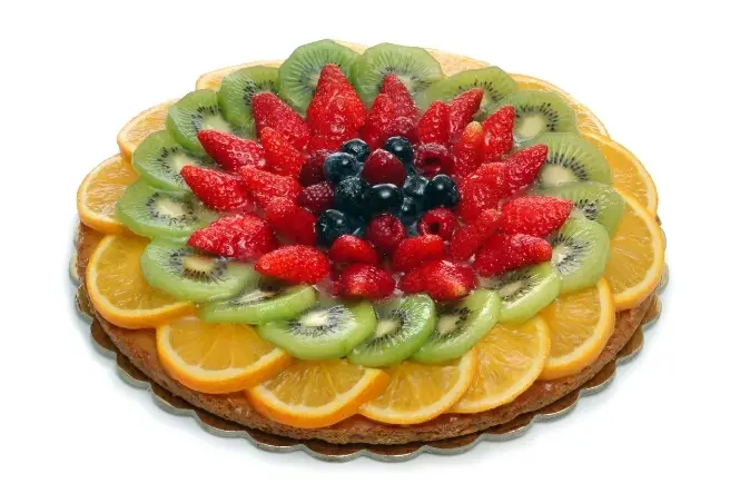- Sift icing sugar over the top of your cake, and top with the dipped fruit.